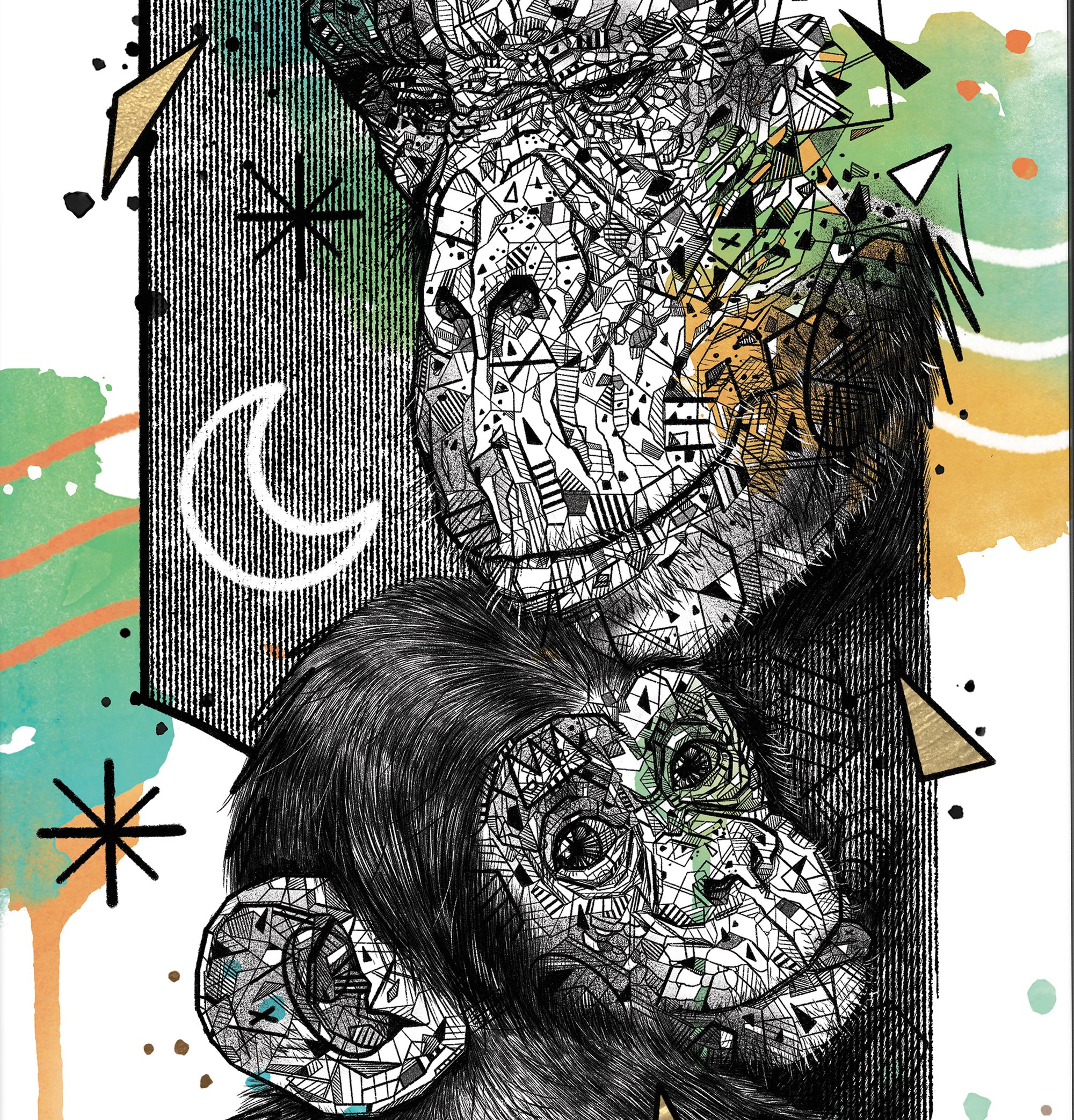 *Doré à la main + encre magique apposée sur la lune et dans les visages.